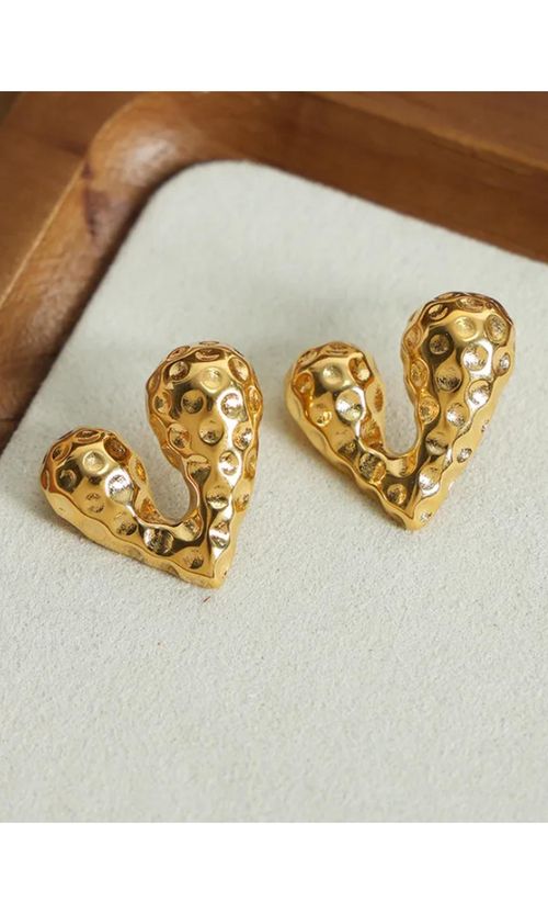 Elevate your everyday look with these stunning Hammered Heart Stud Earrings
