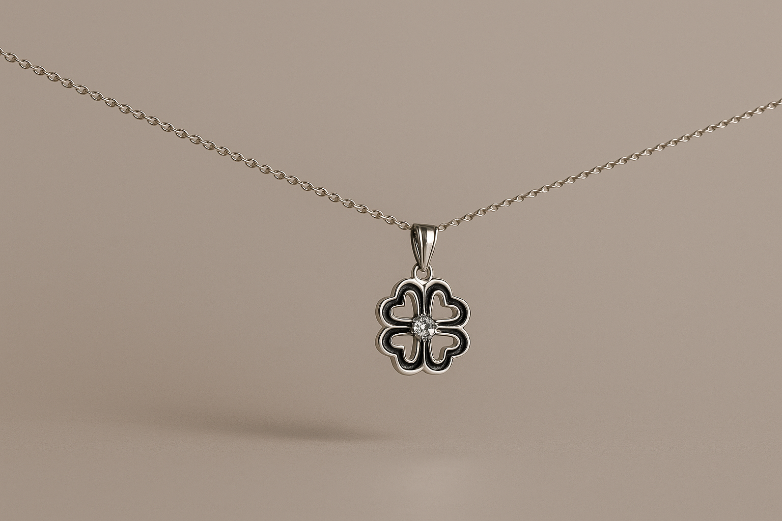 Bring good luck and style together! This unique quatrefoil/clover pendant is ingeniously designed with four outlined hearts coming together at the center. A single sparkling cubic zirconia stone rests in the middle for a touch of brilliance. The silver-tone finish and delicate chain make it a charming and subtle accessory.