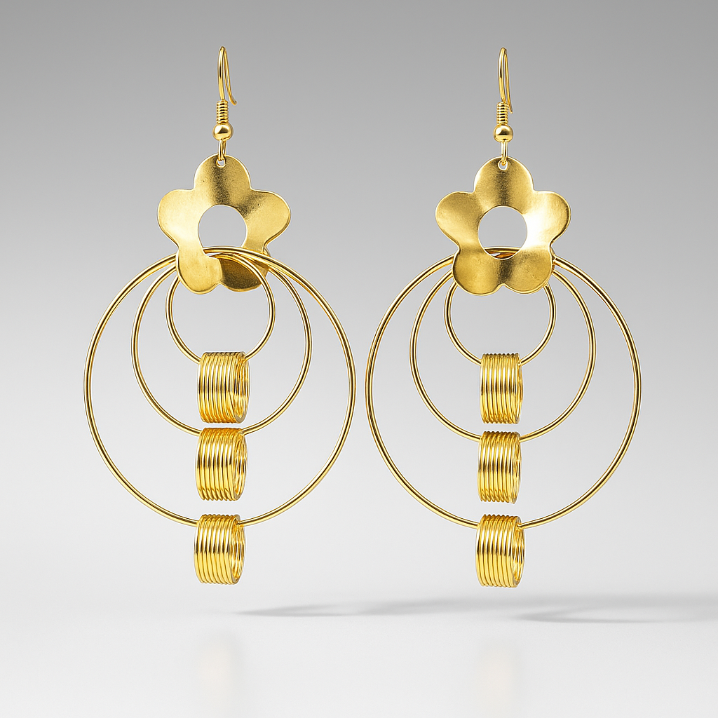 Make a bold fashion statement with these stunning gold-plated hoop drop earrings. Featuring a layered circular design with a floral top, these earrings blend modern artistry with traditional charm. Lightweight and eye-catching, they’re ideal for pairing with both ethnic and western outfits.